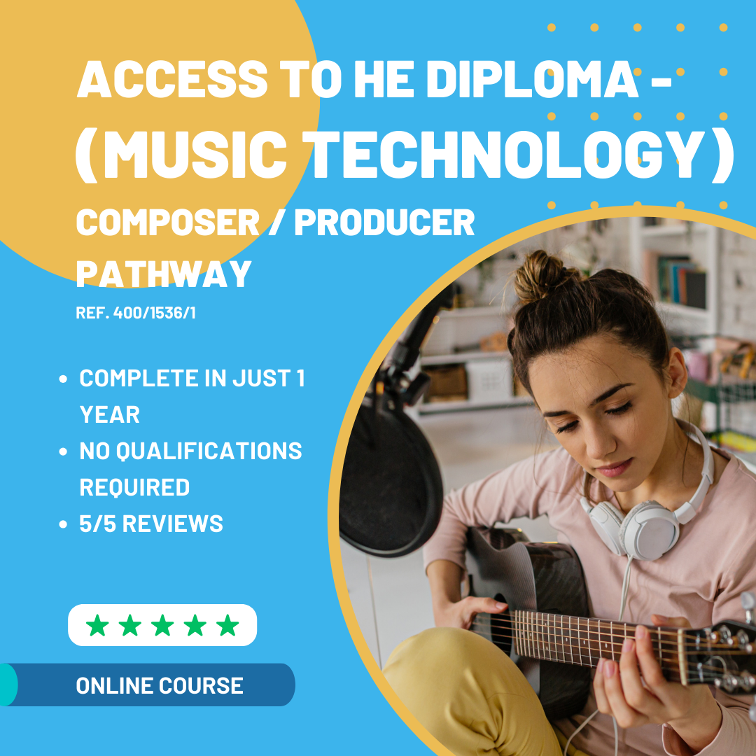 Our Access to Higher Education Diploma Music Technology is designed for aspiring music producers, sound engineers, and composers who want to develop the technical and creative skills needed for further study and careers in the music and audio industry. Whether you aim to work in music production, sound design, film scoring, or live sound engineering, this course provides the essential foundation to help you progress to higher education and beyond. Throughout the course, you will gain hands-on experience with Recording Software Skills, Audio and MIDI Sequencing, and Audio Recording Techniques, equipping you with the technical proficiency needed for professional studio work. You’ll also explore Creative Sampling, Effects and Processors, and Mixdown, learning how to shape, manipulate, and refine sound to industry standards. For those interested in music for media, the Music and Sound for Film unit introduces key concepts in composing and designing sound for visual projects, helping you develop skills for film, TV, and gaming industries. You’ll also study Recording Theory and the Fundamentals of Sound, gaining a deeper understanding of audio physics and studio techniques. Creativity is at the heart of this diploma, with units such as Compositional Skills for Music Producers and Ensemble Skills Using an Instrument, allowing you to refine your musical abilities and develop your own style. The Final Major Project (Music) provides an opportunity to showcase your technical and artistic growth in a professional-standard piece of work. To prepare you for further study, this course also includes Developing Critical Thinking, Academic Study Techniques, and Progressing to Higher Education, ensuring you build the analytical and academic skills required for university-level study. Upon completion, you will be ready to progress into degrees and careers in music production, sound engineering, audio post-production, composition, live sound, and related fields. Whether you dream of working in a studio, scoring films, or producing innovative soundscapes, this diploma provides the foundation to help you turn your passion into a profession.